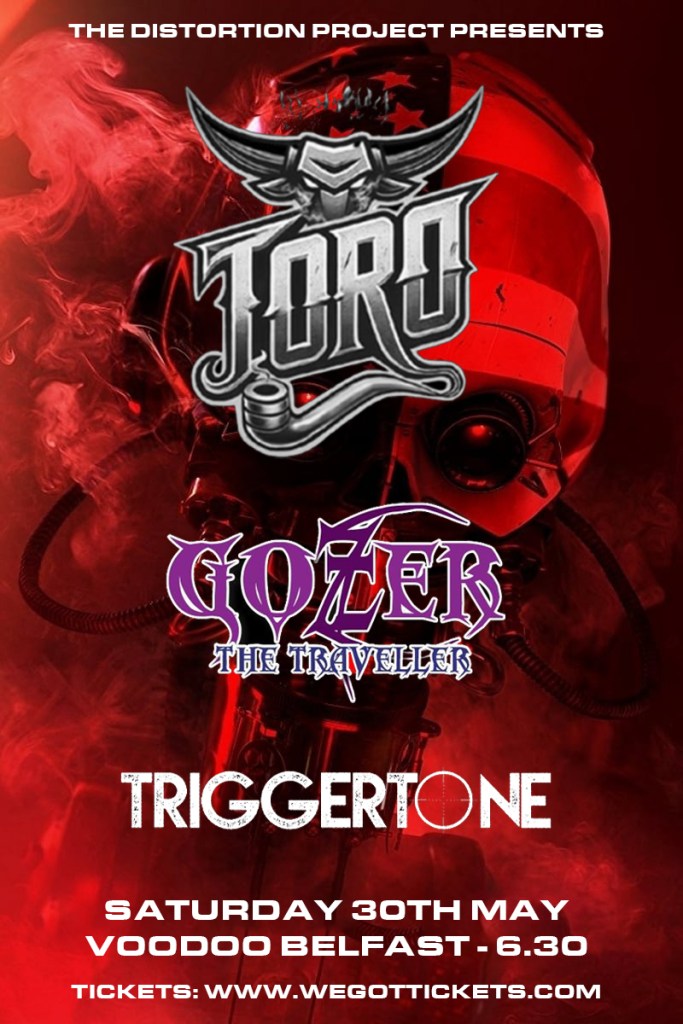The Distortion Project this special headline show by stoner groove metalers EL TORO. They’ll being their brand of slick, titanium-heavy riffing to Voodoo Belfast on Saturday 30th May. Support comes in the form of stubborn Stoner Rock/Metal from Co.Armagh in the shape of Gozer the Traveller and alternative grunge rockers TriggerTone. Doors 6.30pm, tickets on sale now from the link below.